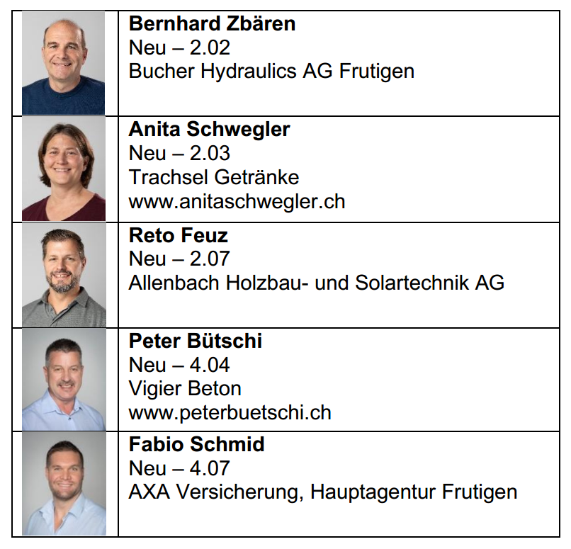 Am Wochenende vom 14. November 2025 findet nicht nur unsere Gewerbeausstellung statt, sondern wir sind auch aufgerufen, den Gemeinderat für die kommenden vier Jahre neu zu bestellen. Der Vorstand hat gestützt auf Artikel 2 unserer Statuten beschlossen, folgende kandidierenden nach Kräften zu unterstützen: